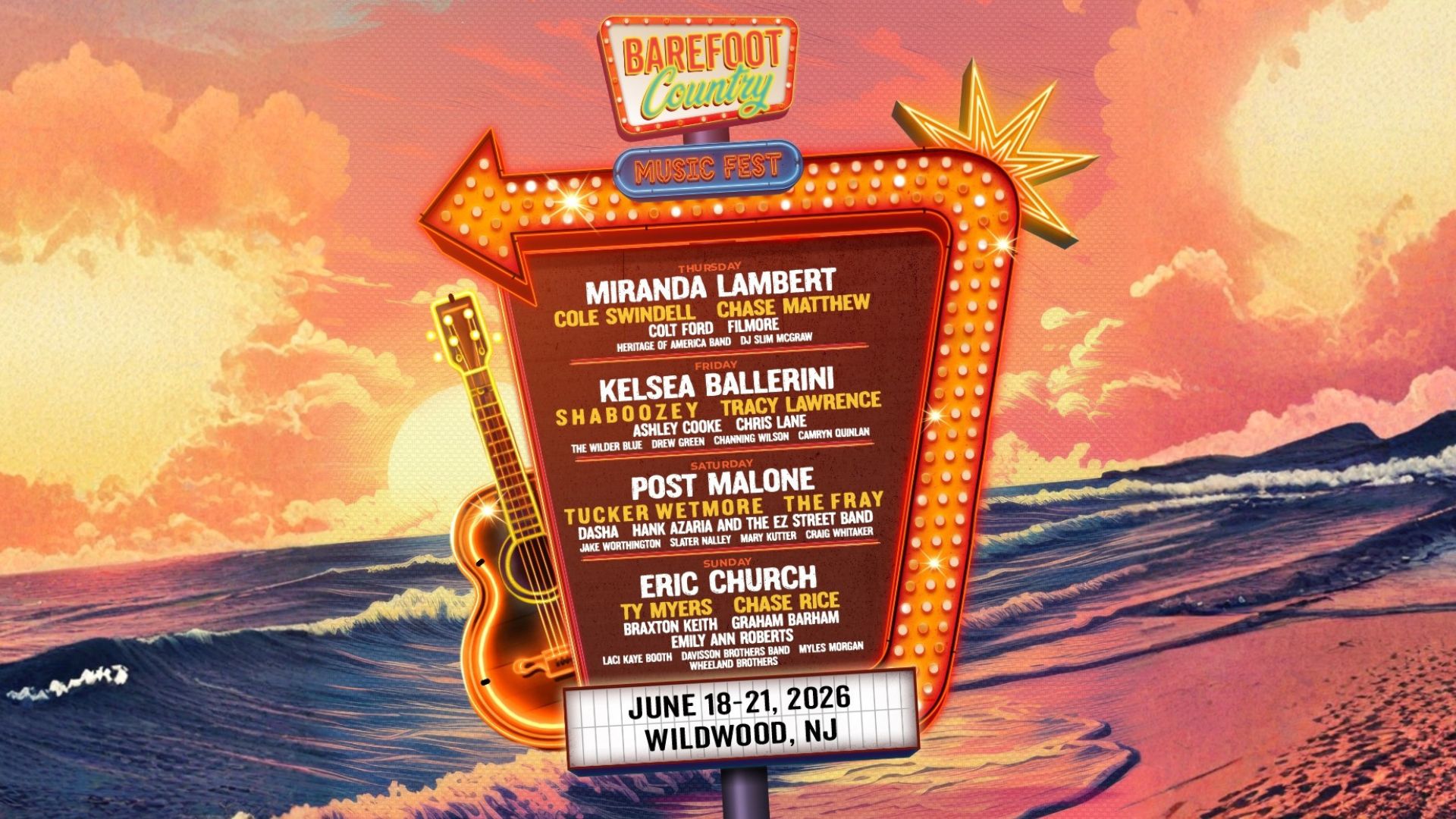 The Barefoot Country Music Fest is officially returning to the beaches of the Wildwoods in 2026 with one of its biggest lineups yet, bringing four days of major country music acts to the Jersey Shore.