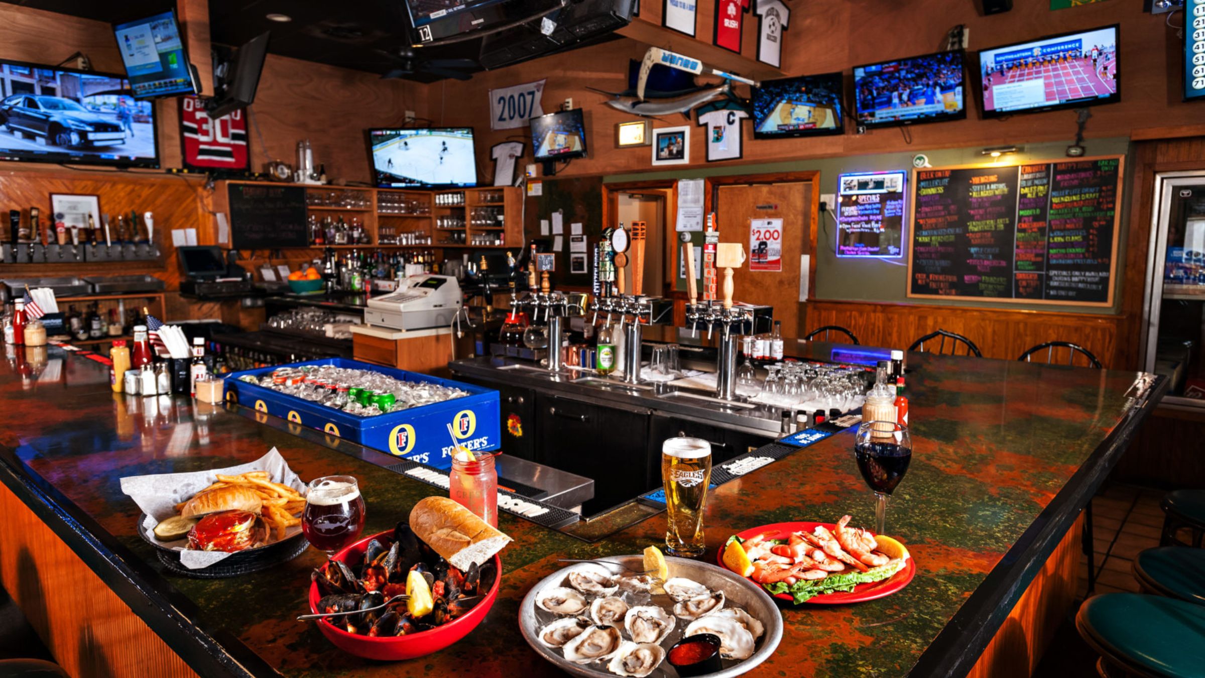 Top quality meats were sourced from George Wells Co. in Philadelphia, including fresh ribeye shaved in house for cheesesteaks and handcrafted burgers made from scratch. Cajun sausage was flown in directly from Louisiana, while fresh shellfish arrived daily from Dock Street Seafood. Weekly specials created by Tim became something regulars looked forward to, reinforcing the tavern’s reputation for comfort food done right.