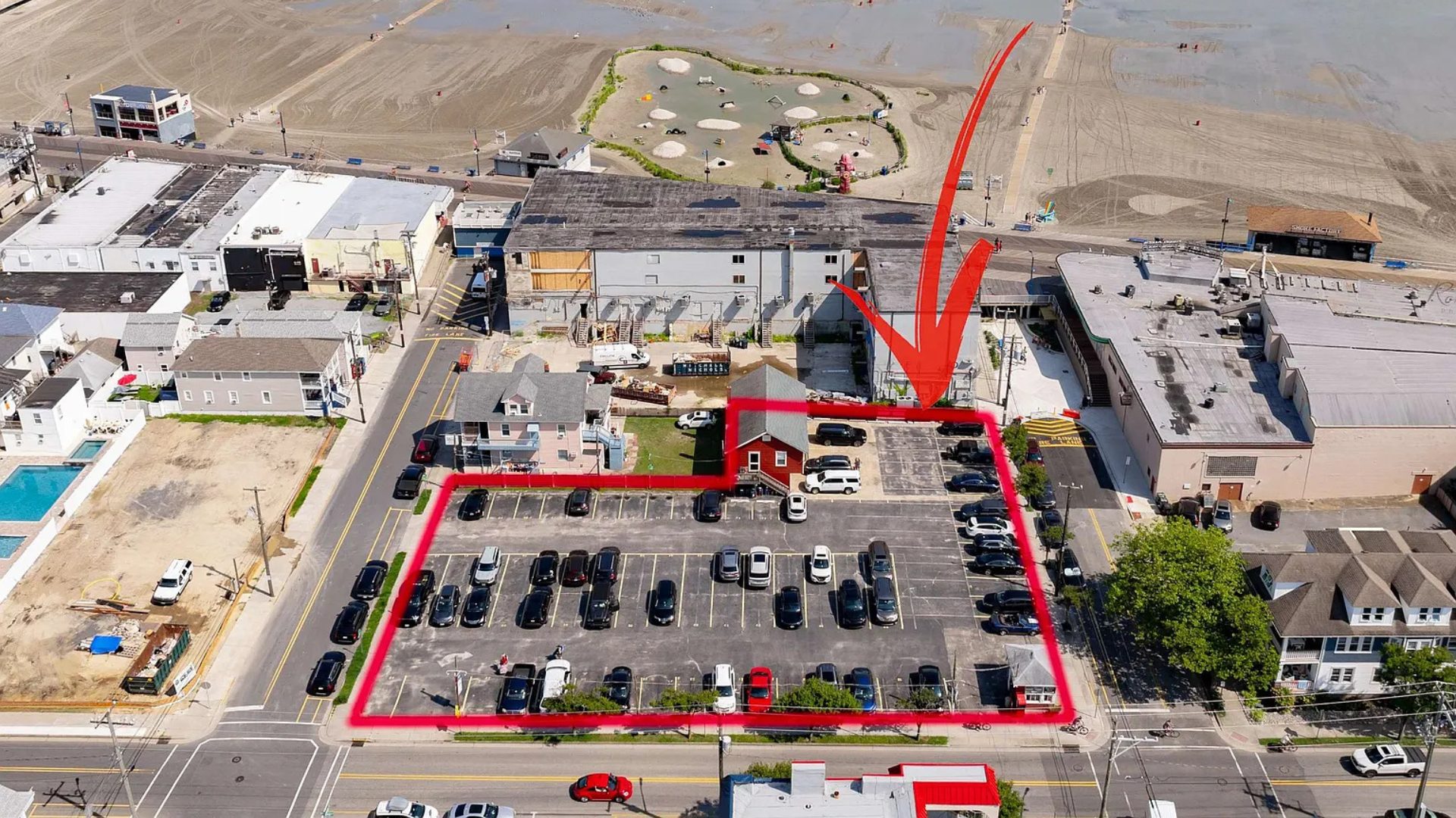 The property spans multiple lots, stretching from Glenwood Avenue to Ocean Avenue and over toward Maple Avenue. The site was previously used as Mike’s Boardwalk parking lot and included a small structure featuring an old garage with a residential unit above it.