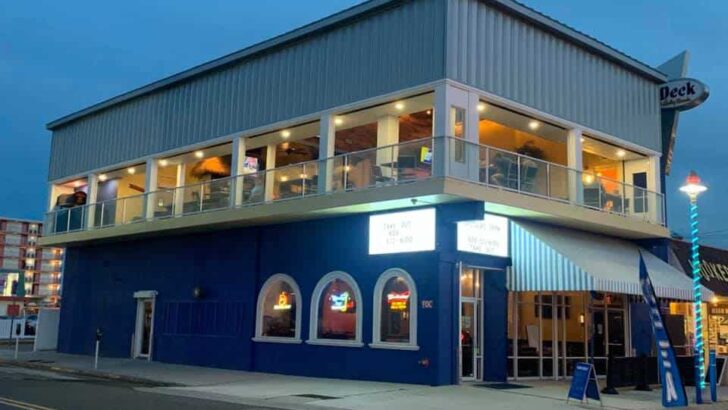 “This sign has incredible flamboyant design and is one of the last examples from Wildwood’s mid-century golden signage. It is also one of the few porcelain-faced neon signs ever produced here and I believe the only survivor. The pink and turquoise neon was lit until about 5 years ago and hasn’t been on since. The numerous bulbs on the woggle-shaped panels and boomerang elements were still lit until recently. The neon still looks all intact, most of these older signs have interior wiring issues that are not maintenance thus many of them “go dark” and deteriorate, a sad state of affairs.”
