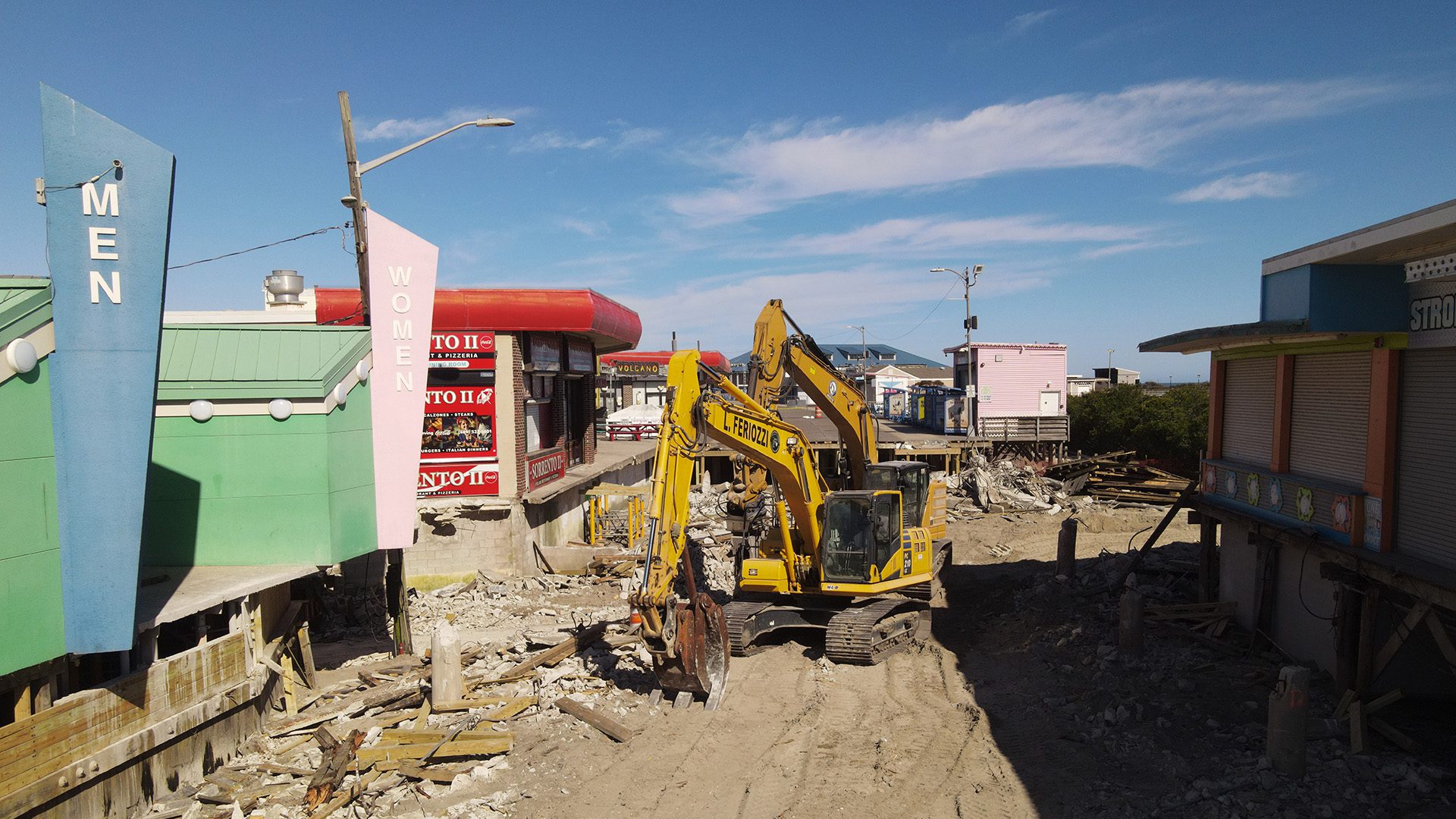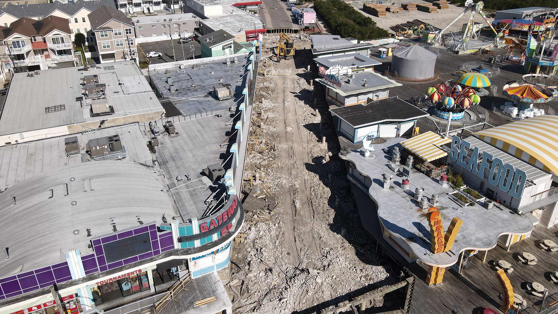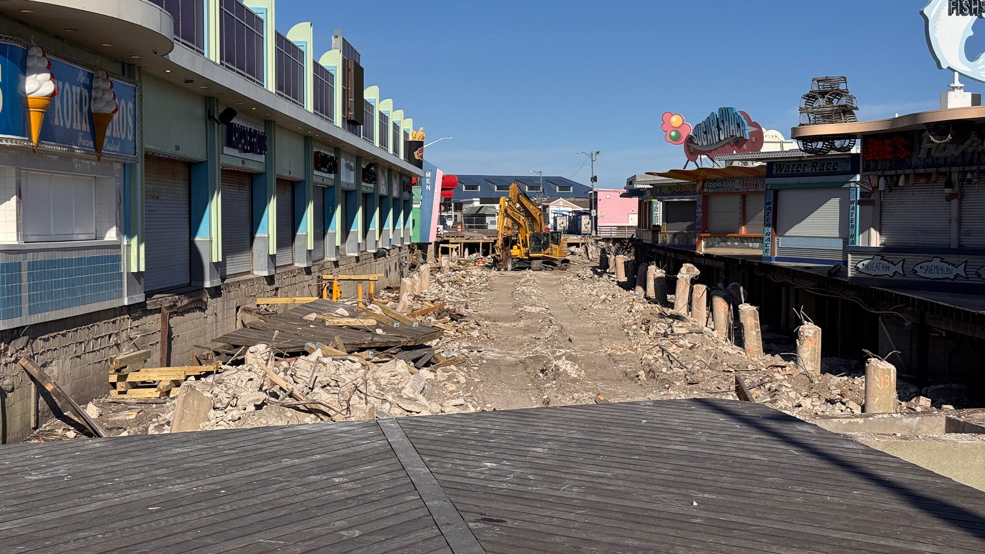 Large sections near Morey’s Surfside Pier in North Wildwood have been torn up as the city officially begins its long-anticipated full-scale boardwalk reconstruction project.