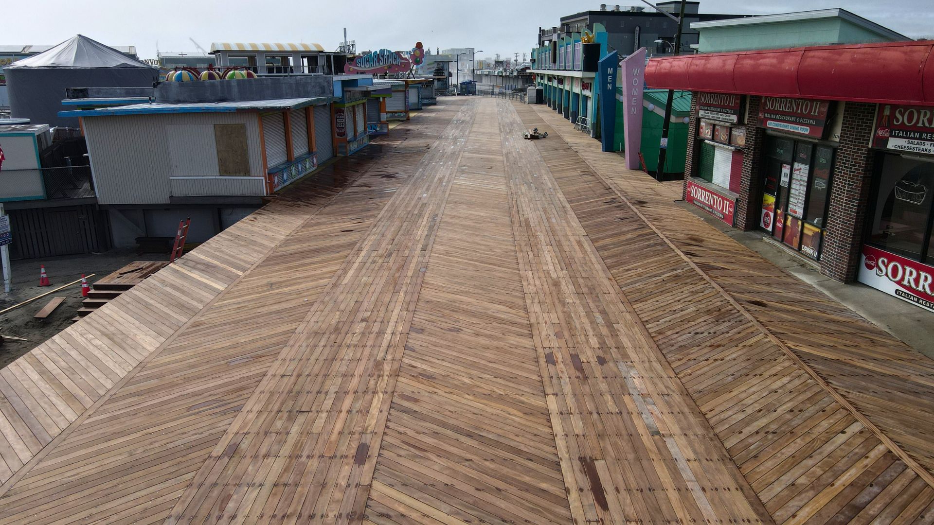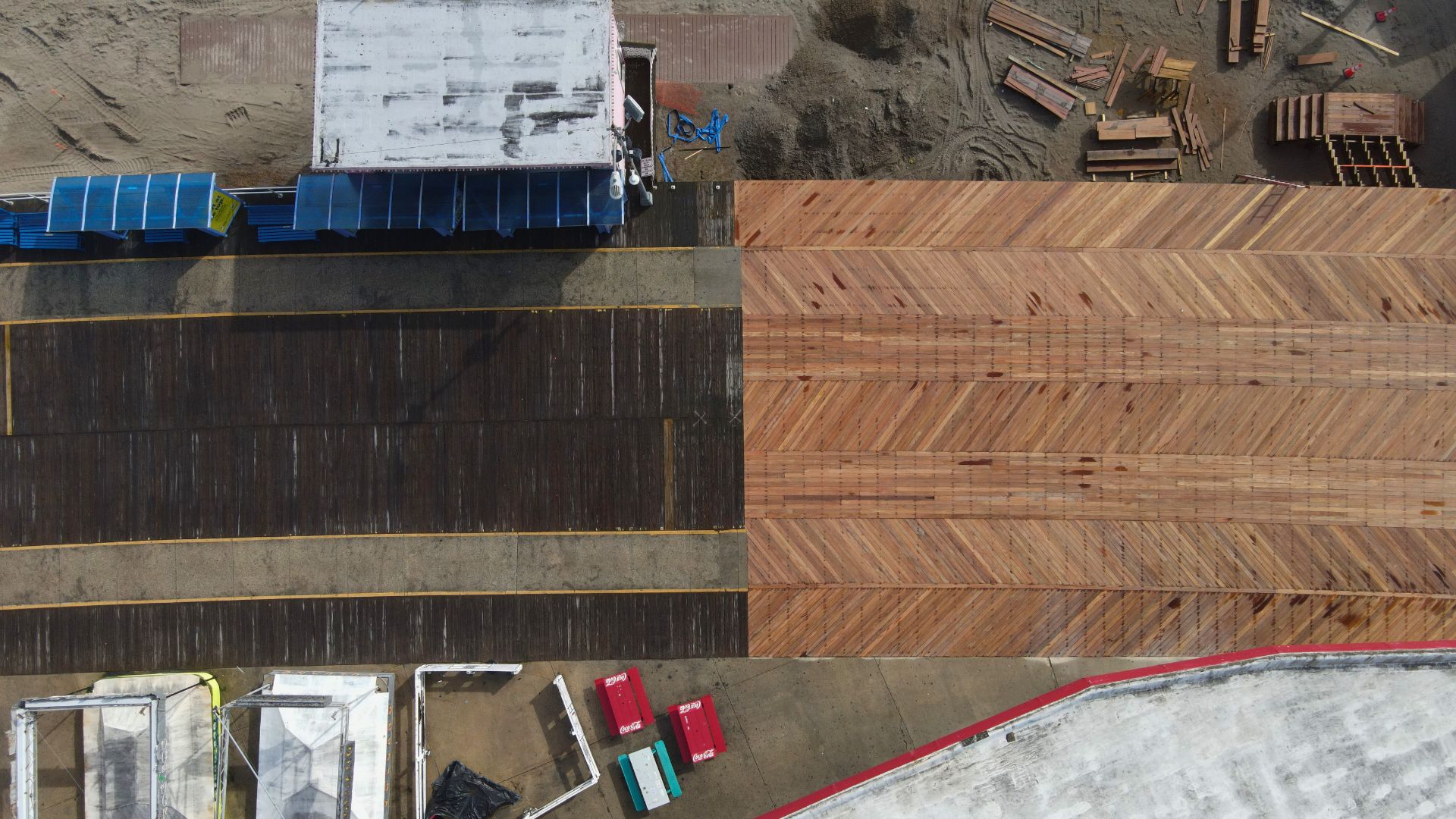 The North Wildwood Boardwalk reconstruction project, specifically the section from 25th Street moving south, appears to be nearing completion.