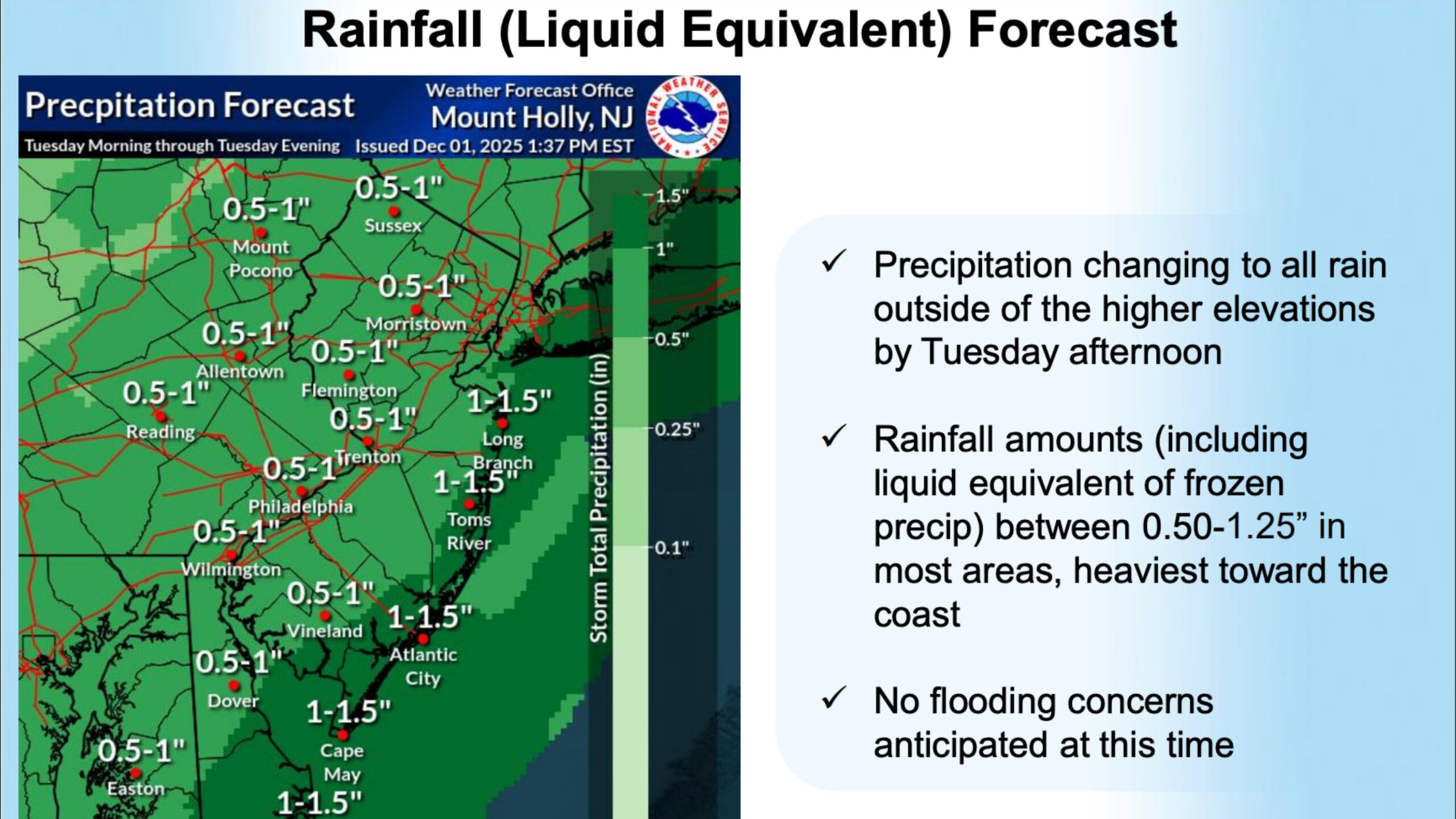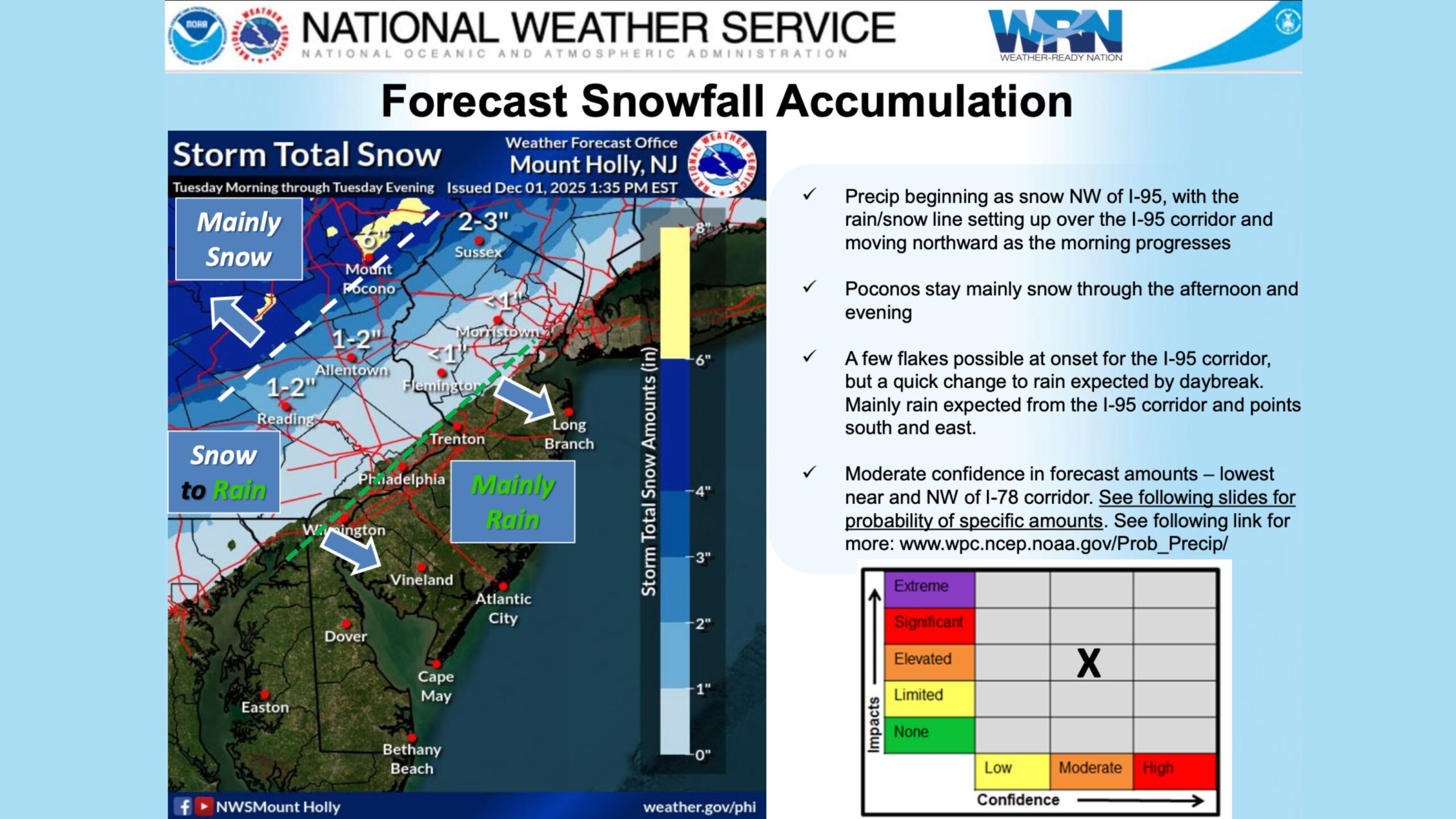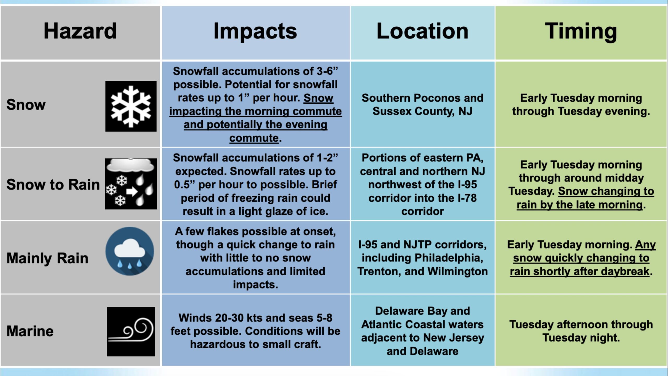 The National Weather Service in Mount Holly released its latest briefing late Monday afternoon, outlining what to expect as the storm moves in.