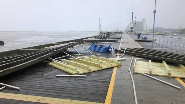 This section of the boardwalk was under construction and wasn’t fastened to the boardwalk. We did a tour of this boardwalk a few days ago to give you an update on the repairs.[That video is embedded under the drone video.]