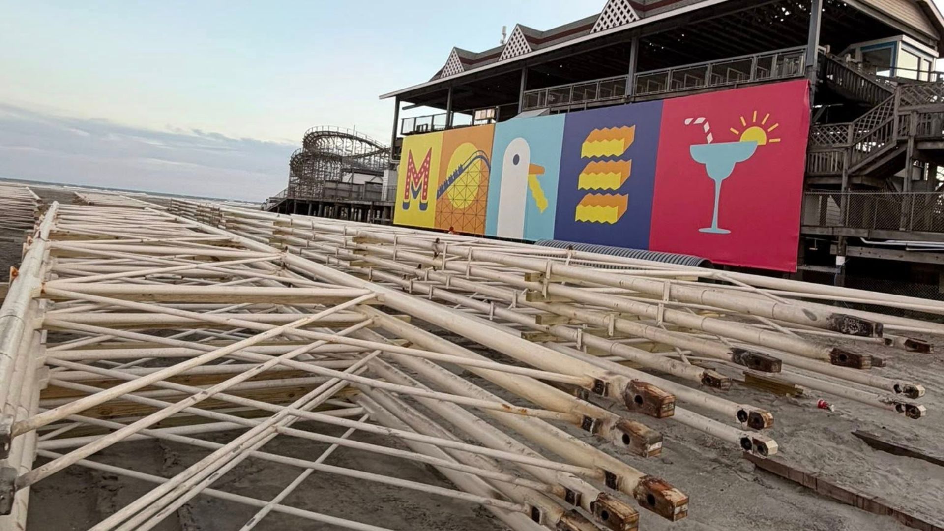To make things easier for themselves, Morey’s Piers put together a temporary workshop right on the beach next to Morey’s Adventure Pier. It is here that this incident took place.